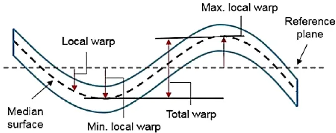 Wafer warping refers to the bending or deformation of materials. A daily-life example would be wood warping caused by unequal variations in the moisture content of different parts of a piece of wood. A semiconductor wafer’s surface experiences warping, caused by internal stresses, temperature fluctuations, or uneven material removal during manufacturing processes.
