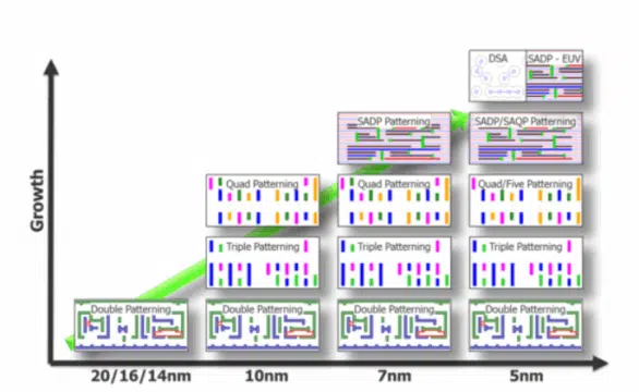 Growth of multi-patterning techniques by technology node