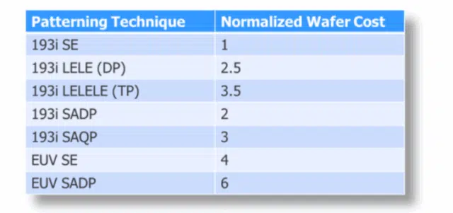Normalized wafer cost adder for different patterning schemes Source: Siemens