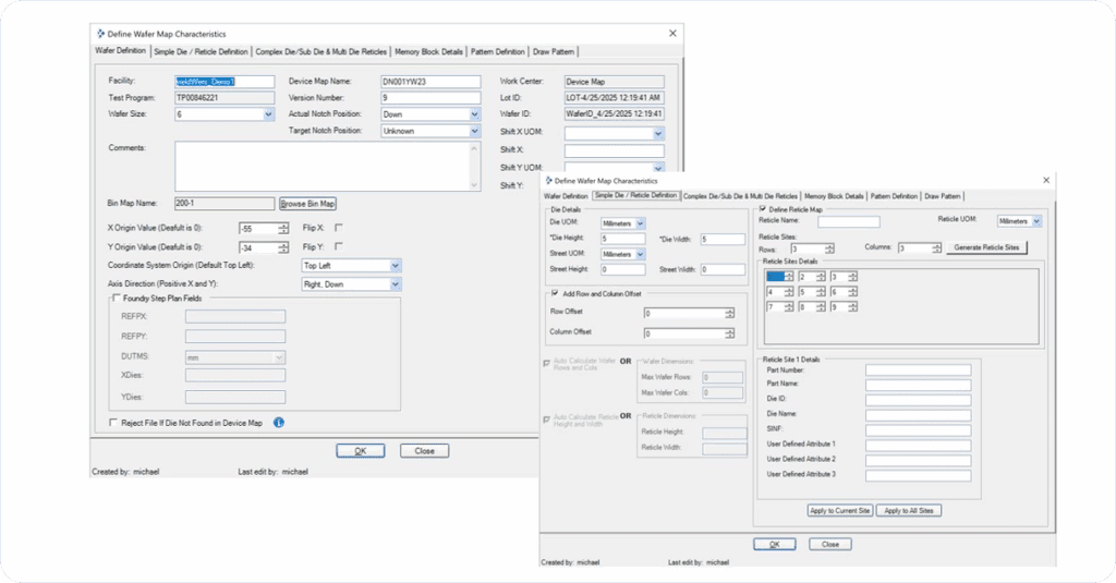 Allows for unique wafer probing edge and sequence definitions for characteristics, reticle, and device